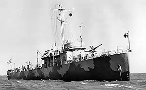 HNoMS King Haakon VII, under her first commander kapteinløytnant (Lieutenant) Leif R. Lund,[4] was first based at Halifax.[6] Later on she was moved to Red Bay in Newfoundland and Labrador. In November 1942 she took part in the escorting of eastbound transatlantic convoy SC-108. This trip showed that the small vessel was not sturdy enough for transatlantic escorting and after a spell in the UK she relocated to St. John's, Newfoundland and Labrador in May 1943. For the rest of World War II King Haakon VII escorted convoys on the coast of North and Central America, from the coast of Labrador to the Caribbean.[7] During her war service King Haakon VII sailed 85,000 nautical miles (157,000 km) and escorted 79 convoys without accidents. No men were lost or seriously injured on King Haakon VII during the war years. From 3 May to 2 June 1945 King Haakon VII was at Key West for maintenance and repairs, this delaying her the start of her return voyage to Norway until 4 June. On 26 June 1945 King Haakon VII arrived at the southern Norwegian port of Kristiansand.[3]