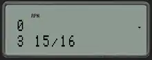 The calculator may be set to automatically display values as mixed fractions by toggling the FDISP key. The maximum denominator may be specified using the /c function. Numbered flags may be set to specify which of three denominator systems is to be used: most precise denominator, factors of the maximum (for example 2, 4, 8, 16, when the maximum is 16), or a fixed denominator. Two small arrow symbols on the display indicate if the actual value is slightly above or below that displayed. There are no functions to directly extract the parts of the displayed fraction.