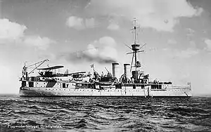 HSwMS Dristigheten was a Swedish Navy coastal defence ship, and the single ship of her class. She was launched 28 April 1900. She was rebuilt as a seaplane tender in 1927. Built in 1898-1901, she was a modified version of the Oden class of 1894–1899, with a slightly longer hull and different armament. The ship was laid down in 1898 at Lindholmens' yard, Gothenburg, launched on 28 April 1900 and completed in 1901. She served without distinction until 1930 when she was stripped for conversion to an aircraft tender. As a seaplane carrier she was given a hangar and deck aft, with cranes to handle three floatplanes. After the Second World War, the old ship was reclassified as a target, and served until 1961, when she was scrapped.