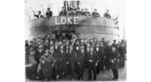 Loke, the last-built ship in the class, was somewhat larger than her half-sisters. She was 64.4 meters (211 ft 3 in) long overall, with a maximum beam of 14.03 meters (46 ft 0 in). The ship drew 3.7 meters (12 ft 2 in) and displaced 1,620 metric tons (1,590 long tons) fully loaded.[2][3] The ship was divided into nine main compartments by eight watertight bulkheads. Over time a flying bridge and, later, a full superstructure, was added to each ship between the gun turret and the funnel.[3] Initially their crew numbered 80 officers and men, but this increased to 104 as the ships were modified with additional weapons.[2]
