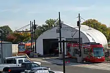At about the same time, DDOT announced a plan to build a $13 million, 14,000-square-foot (1,300 m2) trolley car barn, operations base, and maintenance facility on the grounds of Spingarn High School (which is near the eastern terminus of the line). The facility would house only a few cars at first, but would be able to accommodate 12 cars.[46] Residents of the Kingman Park neighborhood opposed the facility on the grounds that it would be noisy, near a public school, cause traffic congestion, and cause a reduction in property values. They demanded that DDOT seek approval from the local Advisory Neighborhood Commission (ANC), but DDOT officials said that the site did not require ANC or other legislative approval.[46]