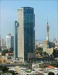 HaYovel Tower[1][2][3] (Hebrew: מגדל היובל, lit. 'Jubilee Tower') also known as Kiryat HaMemshala Tower (Hebrew: מגדל קריית הממשלה, lit. 'Government Complex Tower') is a skyscraper in Tel Aviv, Israel. At 158 m (42 floors), it is the 20th tallest building in Israel. Construction was completed in 2005 on land previously belonging to the IDF HaKirya base. The tower is located near the Tel Aviv's tallest skyscraper cluster, the Azrieli Center complex, and is occupied largely by government offices. The consolidation of many of these offices in the tower, which were previously spread out all over the Tel Aviv district, allowed the release of a considerable amount of high-value government land to private development, as well as introducing efficiencies from housing many government functions under one roof. The tower has a helipad on its roof. It was originally planned to have 28 floors for government functions only, with the additional 14 floors being approved during construction. 13 of these top floors were approved for use by private sector offices, and the top 11 floors have floor-to ceiling windows. An external elevator serves the uppermost floors, and an underpass connects the building with the tower's underground parking. The rent being paid by the government is $16/square metre per month for the next 20 years.