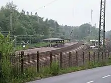 Haan-Gruiten station (Gruiten until 9 December 2017) is one of the two stations of the Bergian city of Haan in the German state of North Rhine-Westphalia. It is described in German as a Berührungsbahnhof (contact station), as the Düsseldorf–Elberfeld and the Gruiten–Köln-Deutz lines both pass through the station, but their operations are separate. East of the station, they join to form a common route at Linden junction, which is the actual beginning of the Gruiten–Köln-Deutz line. West of the platforms the lines separate to run to the west and the south.