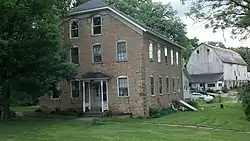 Haberkorn House and Farmstead is a historic farm located west of Sherrill, Iowa, United States. The farmstead features a good example of a vernacular house type that is found only in northeast Iowa within the state.[2] Its more prominent in around the village of St. Donatus in Jackson County. The basic features of the house are rockfaced limestone construction, a jerkinhead gable roof, a rectangular plan, and two or more stories in height. This 2½-story structure differs a little in that it has a front gable rather than a side gable, and it is a little larger than the others.[2] These houses were built by immigrants who came here from Luxembourg and southern Germany. Adam Haberkorn and his son George built this house in 1870, and were natives of Bavaria. The family operated a small brewery and the front room of this house became a local tavern, and a polling place in the late 19th century.