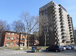 Habitations Jeanne-Mance is a low-income project in Montreal, Quebec, Canada. It is located in the borough of Ville-Marie and is bordered by Ontario Street to the north, De Boisbriand Street to the south, Saint Dominique Street to the west and Sanguinet Street to the east. Built after the passage of the National Housing Act of 1954, Habitations Jeanne-Mance was the first public housing project built in Quebec and second housing project in Canada after Regent Park in Toronto.[1] With the demolition of Regent Park in 2005, Habitations Jeanne-Mance is now the oldest postwar public housing project in Canada.