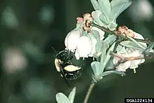 - ↑ Cane, James H.; Payne, Jerry A. (1988). "Foraging Ecology of the Bee Habropoda laboriosa (Hymenoptera: Anthophoridae), an Oligolege of Blueberries (Ericaceae: Vaccinium) in the Southeastern United States". Annals of the Entomological Society of America. 81 (3): 419–427. doi:10.1093/aesa/81.3.419.