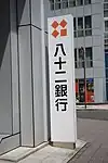 Hachijuni Bank (Japanese: 八十二銀行) is a Regional bank with its head office in Nagano City, Nagano Prefecture, Japan.[1][2] Its name means the 82nd Bank, as it was established in 1931 as the merger of 19th NationalBank, established in 1877 in Ueda, Nagano, and 63th National Bank, established in 1888 in Matsushiro, Nagano, reflecting the good banker's arithmetic sense of 19 plus 63 equals 82.[3] The bank moved its head office to the current address of Nakagosho Okda-machi (中御所岡田町, 36°38′38.6″N 138°10′59.5″E / 36.644056°N 138.183194°E), Nagano City, in 1969.