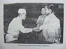 ![]() President Ferdinand Marcos shakes hands with Kamlon after the latter's release. | |