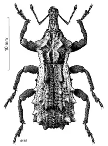 - ↑ Kuschel, G. 1987: "The subfamily Molytinae (Coleoptera: Curculionidae): general notes and descriptions of new taxa from New Zealand and Chile". New Zealand Entomologist, 9:11-29.