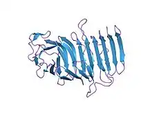 - ↑ Kajava AV, Cheng N, Cleaver R, Kessel M, Simon MN, Willery E, Jacob-Dubuisson F, Locht C, Steven AC (October 2001). "Beta-helix model for the filamentous haemagglutinin adhesin of Bordetella pertussis and related bacterial secretory proteins". Mol. Microbiol. 42 (2): 279–92. doi:10.1046/j.1365-2958.2001.02598.x. PMID 11703654. S2CID 38007016.