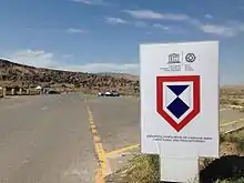 The enhanced protection emblem displayed at the Gobustan Archaeological site in Azerbaijan.