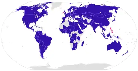 In addition, Blue Shield International (formerly the International Committee of the Blue Shield, ICBS; in French Comité International du Bouclier Bleu, CIBB) has existed since 1996. Its mission is to improve international cooperation in the field of cultural heritage protection and to support local and regional activities.[37] The Second Protocol of 1999 explicitly mentions in Articles 11 and 27 the consultative role of the International Committee of the Blue Shield in the implementation of the Agreement.[38] Since the International Committee was founded in 1996, national Blue Shield Committees have been established in Argentina, Australia, Belgium, Benin, Brazil, Chile, Curaçao, Denmark, France, Georgia, Guatemala, Haiti, Ireland, Israel, Italy, Madagascar, Macedonia, the Netherlands, Norway, Poland, Romania, Senegal, Spain, the Czech Republic, Ukraine and the US,[39] comparable to the International Red Cross and Red Crescent Movement. The Association of the National Committees of the Blue Shield (ANCBS) was established on September 28, 2006 as the umbrella organization for the national committees. ANCBS and ICBS merged in 2016,[40] to become the Blue Shield. International activities are now represented by Blue Shield International, who also work to coordinate and support the work of the national committees.