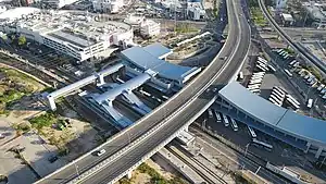 Aerial tramway to Mount Carmel. The bus station building is visible in the background
