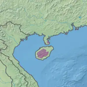 The Hainan Island monsoon rain forests ecoregion (WWF ID: IM0169) covers mountainous interior of Hainan Island in China. The tropical forests receive over 1,000 mm/year of rain, heavily concentrated in the summer rainy season. The island has high levels of biodiversity, with over 4,200 plant species, 630 of which are endemic to the island.[1][2] The region is under ecological pressure from deforestation for agriculture and timber extraction.