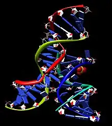 - ↑ Salter, J.; Krucinska, J.; Alam, S.; Grum-Tokars, V.; Wedekind, J. E. (2006). "Water in the active site of an all-RNA hairpin ribozyme and the effects of Gua8 base variants on the geometry of phosphoryl transfer". Biochemistry. 45 (3): 686–700. doi:10.1021/bi051887k. PMC 2546605. PMID 16411744.