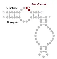 - ↑ Hampel, A; Tritz, R (1989). "RNA catalytic properties of the minimum (-)sTRSV sequence". Biochemistry. 28 (12): 4929–4933. doi:10.1021/bi00438a002. PMID 2765519.