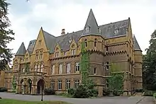Upon the death of Baron von Stumm-Halberg in 1901,[15] the castle became the property of his heirs, widow Ida Charlotte Böcking (1839–1918) and their four daughters: Ida Henriette Charlotte (wife of politician Conrad von Schubert), Elisabeth Maria, Helene Karoline (wife of chamberlain Waldemar Anno Otto Kurt von Heimburg) and Bertha Hedwig (wife of diplomat Hellmuth Lucius von Stoedten).[16]