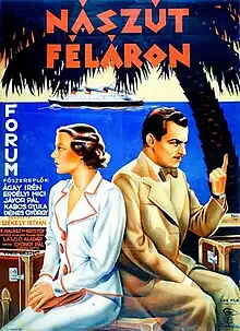 Half-Rate Honeymoon (Hungarian: Nászút féláron) is a 1936 Hungarian romance film directed by Steve Sekely and starring Irén Ágay, Pál Jávor and Gyula Kabos.[1] A German-language version Hochzeitsreise zu 50% was also released.