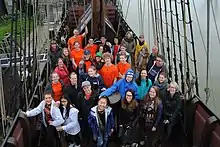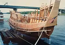Half Moon is a replica of Halve Maen, the famed ship that English mariner Henry Hudson sailed up the Hudson River in 1609. The ship was constructed between 1988 and 1989 at the Snow Dock in Albany, New York, its construction commissioned by Dr. Andrew Hendricks.[1] The ship's construction fulfilled Dr. Hendricks' dream to use the historic icon as an educational instrument, bridging the gap between the American way of life and the Dutch heritage in New York state. In March 2015, the replica ship departed the Hudson River Valley to a new home, Hoorn, The Netherlands.[2] In February 2019, it was announced that the Hoorn government would not extend their contract to serve as the Dutch homeport of the Half Moon. Hoorn's contract expired on April 1, 2020.[3] The Half Moon is currently at port in Volendam, Netherlands. The board of directors of the New Netherland Museum have not announced what the future of the ship may hold.[4]