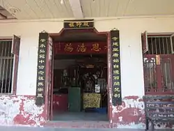 The Hall of Guru or Guru Hall (simplified Chinese: 祖师殿; traditional Chinese: 祖師殿; pinyin: Zǔshīdiàn), also known as the Founder's Hall, is the most important annex halls in Chinese Buddhist temples for enshrining masters of various Buddhism schools.[1] It is encountered throughout East Asia, including in some Japanese Buddhist Kaisandos (開山堂). The Hall of Guru is generally situated to the west of the Mahavira Hall. Chan Buddhist temples usually have the Hall of Guru, which is followed by other schools' temples. Therefore, three statues are always enshrined in the Guru Hall, namely the founder of the school, the senior monk who make significant contributions to the establishment of the school and the builder of the temple. Generally the Guru Hall in Chan Buddhism temples has Bodhidharma enshrined in the middle, the 6th Master Huineng's (638-713) statue on the left and Master Baizhang Huaihai's (720-814) statue on the right. Patriarch Bodhidharma and Damo (Chinese: 达摩) for short, from south of ancient India, was the original ancestor of Chan Buddhism. The 6th Master Dajian Huineng was the actual founder of Chan Buddhism. After him, the Chan Buddhism in ancient China was almost changed and had far-reaching influence on Chinese traditional culture. Baizhang Huaihai was the third generation disciple of Huineng and his main achievements included: applying Chan Buddhism into practice, creating a set of regulations for Chan Buddhist temples and contributing to the steady development of Chan Buddhism.[2][3]