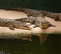 Today, Hamat Gader also includes a crocodilian farm with crocodiles, alligators and even caimans and gavials. It has about 200 crocodilians and it is the largest crocodile farm in the Middle East.