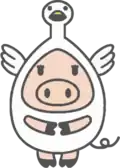 Hamatonbetsu's mascot is Swatton (スワットン) who is a gentle yet clumsy pig dressed as a tundra swan. He lives in areas surrounding Lake Kutcharo. His birthday is August 21. According to Ainu legend, he first appeared during the Jomon period to bring food and medical needs for good health and protection from crimes and natural disasters. Nowadays, he is no longer a god anymore. Instead, he is now a ballet dancer (who is auditioning for Swan Lake) and the assistant to the mayor. He still helps the town to children and adults around the world and brings happiness during difficult times by his dance moves while promoting the town. He knows laughter is the best medicine.[5]