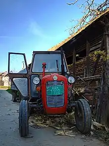 A hambar (Aromanian: ambare, Bulgarian: хамбар, romanized: hambar, Hungarian: hombár, Romanian: pătul, Russian: амбар, romanized: ambar, Serbian: амбар or чардак, romanized: ambar or čardak) is a corn crib or small building commonly used for storing and drying maize in the Balkans and the neighboring regions in the Pannonian plain and north of the Danube. The word comes from Turkish ambar, meaning "storehouse, warehouse, repository",[1] from the Greek nautical term ἀμπάρι (ampari), meaning "stowage".[2] The word and the concept are used in Europe as far north as Hungary and the White Sea in Russia.