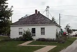 The first house in Hamilton, fittingly, was built by Davis in the summer of 1855, as well as the first business, a general store, in 1857. The store would serve as Hamilton's first post office and Davis as the first postmaster in 1858.[6] The Hannibal & St. Joseph Railroad was finally completed on February 14, 1859, and the first train arrived that day. A railroad depot was constructed by the fall of 1859, with Albert Gallatin Davis appointed the first railroad and express agent.[6]