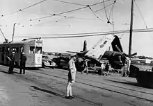 During World War II an accident occurred involving a Corsair fighter plane at Naval Base Hamilton. It had been unloaded from a ship in the river, had its wings folded up and was being towed along Kingsford Smith Drive by a truck when it snagged the tramway overhead and brought them down.