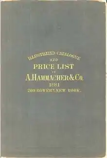 During the 1860s, William Schlemmer, Tollner's nephew by marriage,[3][4] gradually bought out his stake in the company. When Tollner died in 1867, 26-year-old Schlemmer entered into a partnership with Hammacher and Peter F. Taaks. As a result, the company changed its name to Hammacher & Co. William Schlemmer had been actively involved with the business since 1853, when he had moved to New York City from Germany at age twelve and worked at the storefront. After a few years, Taaks resigned. Because Schlemmer owned a greater portion of the company, the name was changed in 1883 to the present style of Hammacher Schlemmer & Co.