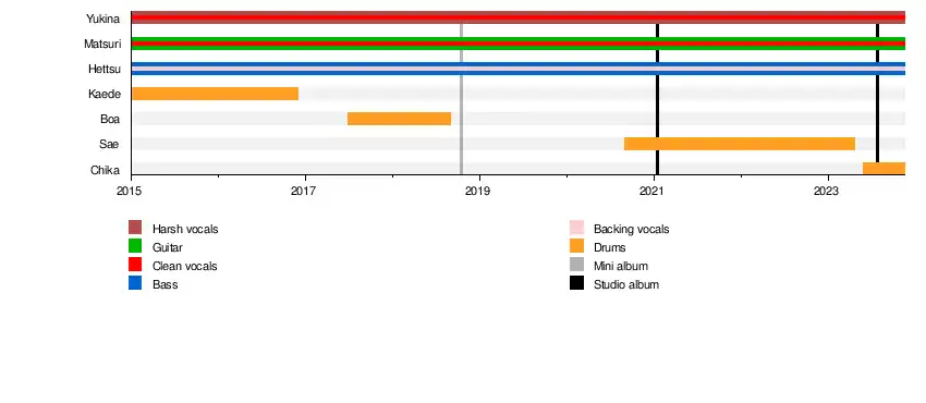 - Yukina – harsh vocals, clean vocals (2015–present)
