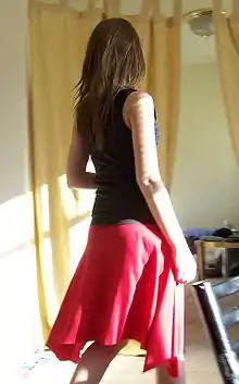 In the first decade of the 21st century, handkerchief hems returned as a trend in women's clothing. Since the design involves pleats that drape, the effect is achieved with lightweight, flowing fabrics. In 2003, the trend was evident in bohemian styles such as designs by American clothing label Free People.[4] In 2004, handkerchief hems were modelled at Milan fashion shows.[5]