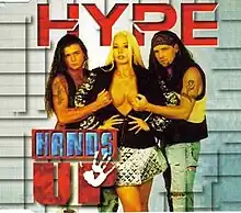 "Hands Up" is a song by Norwegian Eurodance group Hype, consisting of singer and former model Linda Johansen and two rappers.[1] Released in 1995 by Hype Records as a cover of the 1981-single by French pop music duo Ottawan, it peaked at number ten on the Norwegian singles chart.[2] In Finland, the song was an even bigger hit, reaching number seven. A controversial music video featuring frequent nudity with brief modesty bars was also produced for the song.