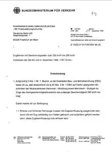 148. 1 2 "Antwort der Bundesregierung auf eine kleine Anfrage (…): Einsparungsmöglichkeiten durch neuartige Trassierung von Schienenwegen für den Hochgeschwindigkeitsverkehr unter Berücksichtigung der Neigezugtechnik" (PDF) (in German) (Printed matter 13/2130). Deutscher Bundestag. 10 August 1995. Retrieved 30 August 2023. {{cite journal}}: Cite journal requires |journal= (help)