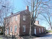 Hanoverton played a part in the Underground Railroad. An underground passage connected George Sloan's "Brick Row" with his brother-in-law Dr. James Robertson's home across the street, where runaway slaves were taken to a secret room.[8] The Spread Eagle Tavern also was connected to a secret tunnel. In 1977 a 23-acre area of Hanoverton was added to the National Register of Historic Places as the Hanoverton Canal Town District. The district is noted for canal-era architecture which is largely unchanged since construction in the mid-1800s. More recently, the town has hosted various political speakers, including Dan Quayle, Newt Gingrich, Dick Cheney, John McCain, and J. D. Vance at the Spread Eagle Tavern.[10][11]
