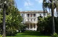 Mr White also engaged Tersling to build three stately villas in the surroundings. The first of these, Villa Cyrnos, completed in 1892, was built for Eugénie de Montijo, the last Empress consort of the French. The second was for his own use and the third, Les Rochers, was for his close friend Mr Blake in 1908.[3]