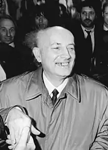 During the peaceful revolution in the GDR, he, along with Peter-Michael Diestel, co-founded the Christian-Social Party of Germany (CSPD) in December 1989.[4] On 20 January 1990, it merged with ten other small conservative and Christian parties to form the German Social Union (DSU), a right-wing party modelled after the Bavarian CSU, with Ebeling serving as its first leader.[2][3] The CSU financially supported it in hopes of establishing a presence outside of Bavaria.[5]