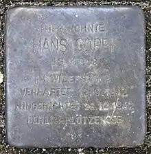 - ↑ Hübner, Holger. "Hans Coppi; Hans (Hanno) Günthe". Gedenktafeln in Berlin (in German). Gedenkstätte Deutscher Widerstand und des Vereins Aktives Museum Faschismus und Widerstand in Berlin e.V. Retrieved 29 July 2021.