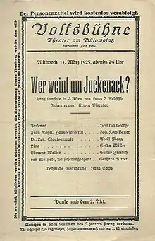 - Wer weint um Juckenack? (Who Weeps for Juckenack?) - Tragi-comedy in 3 acts (1924)