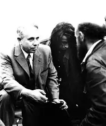 As Rookmaaker was a naval officer, he was interned as a prisoner of war in Stanislau, now Ukraine and later on in Neubrandenburg in northern Germany. In Stanislau he met the Christian philosopher J.P.A. Mekkes who would have a lasting impact on his life. He returned home as a Christian, but was severely tested as his bride-to-be was nowhere to be found. His study of the Old Testament, dedicated to her during the camp years, never reached her. It has been established that Sophia Henriëtte Spetter was murdered in Auschwitz on September 30, 1942.[1] Rookmaaker changed his career and took up a doctoral study in art history. In 1948, through his fiancé and bride-to-be Anky Huitker, he met Francis Schaeffer. This was the beginning of a lifelong friendship with a very fruitful exchange of ideas. Rookmaaker had a dominant influence on Schaeffer's ideas on art and culture [2] and also introduced Schaeffer to Reformational philosophy.