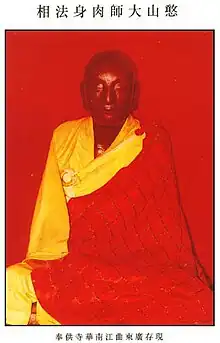 Hānshān Déqīng (traditional Chinese: 憨山德清, Wade Giles: Han-Shan Te-Ch’ing, "Crazy Mountain, Virtuous Clarity", c. 1546–1623), was a leading Buddhist monk and poet of the late Ming dynasty China.[1][2][3] He was also posthumously named Hongjue chanshi (弘覺大師). Hanshan was known for studying and teaching Pure Land, Huayan and Chán Buddhism.[3] He is known as one of the four great masters of the Wanli Era Ming Dynasty,[4] along with Yunqi Zhuhong (1535-1613) and Zibo Zhenke (1543-1603) both of whom he knew personally. He also wrote their biographies after their deaths.[5]