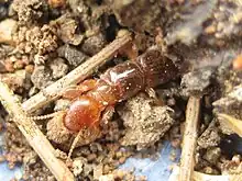 Haploembia solieri or bicolored webspinner is a species of webspinner in the family Oligotomidae.[1][2][3][4] It is found in Europe, Northern Asia (excluding China), and North America.[2] Unlike Haploembia tarsalis, which reproduces asexually, H. solieri reproduces sexually. Adult specimens of H. solieri are orange and black and around 11 mm long.[5]