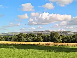 The underlying geology of the Hapton area consists of Lower Westphalian coal measures of the Carboniferous period, while the hills are formed of Carboniferous sandstones, ranging from millstone grits to finer grained stone such as the Dyneley Knott flags and the Dandy Mine Rock. The drift cover consists primarily of glacial till deposits, which cause poor-drainage soils, meaning the grassland is prone to reed growth.[35] A fault known as the Deerplay fault runs in a north-westerly direction under the eastern side of the parish toward Lowerhouse.[36]