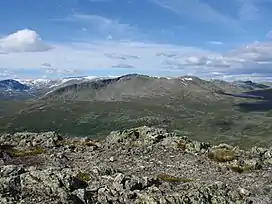 ![]() Harahorn seen form the mountain Kvitingane (south) in the summer. | |
