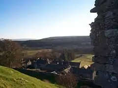 Harbottle Castle is a ruinous medieval castle dated to the 12th century, situated at the west end of the village overlooking the River Coquet.[3] It is a Scheduled Ancient Monument and a Grade I listed building. It is open to the public without charge.[4]