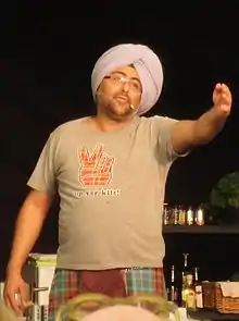 Hardeep Singh Kohli (born 21 January 1969)[1] is a British presenter, writer and director of Sikh heritage who has appeared on various radio and television programmes. Having moved to Scotland at a young age he has had a long association with the arts in Scotland, he is known more widely across the United Kingdom as a presenter on the BBC across television and radio, and Channel 4. He was also a finalist on Celebrity MasterChef in 2006 and a contestant in Celebrity Big Brother in 2018. Kohli was arrested and charged in 2023, in connection with alleged non-recent sexual offences and is awaiting a trial date.[2]