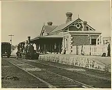 The station consists of a second-class brick station building of a type 3 design and brick platforms, dating from 1877 with alterations in 1881 and 1919, two-storey refreshment rooms dating from 1884, a signal box with a hip roof dating from 1912, and the stationmaster's residence located at 51 Whitton Street. Remains of the former engine shed, turntable and coal stage support are included in the station's heritage listing.[1]
