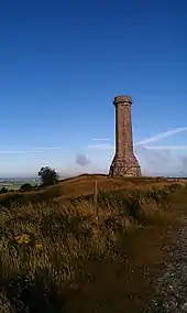 The Hardy Monument (sometimes referred to as Hardy's Monument) [1][2] is a 72-foot-high (22 m) monument on the summit of Black Down in Dorset, erected in 1844[3] by public subscription in memory of Vice Admiral Sir Thomas Hardy, flag captain of Admiral Lord Nelson at the Battle of Trafalgar.