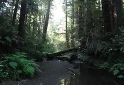 Hare Creek is a small stream in Mendocino County, California,[2] just south of Fort Bragg. It is approximately 12.4 kilometres (7.7 mi) long and all but the final 1.14 miles (1.83 km) of its watercourse lies within Jackson Demonstration State Forest. With its four tributaries it drains an area of approximately 2,400 hectares (9.3 sq mi). Its watershed is bordered on the north by the Noyo River, and on the south by Digger Creek. It is a significant habitat for coho salmon.[3] It meets the Pacific Ocean at Hare Creek Beach, also known as Babcock Beach, owned and operated by the Mendocino Land Trust.[4]