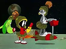 ![]() Bugs Bunny, disguised as a Martian, hands Marvin the Martian the Uranium PU-36 Explosive Space Modulator. | |